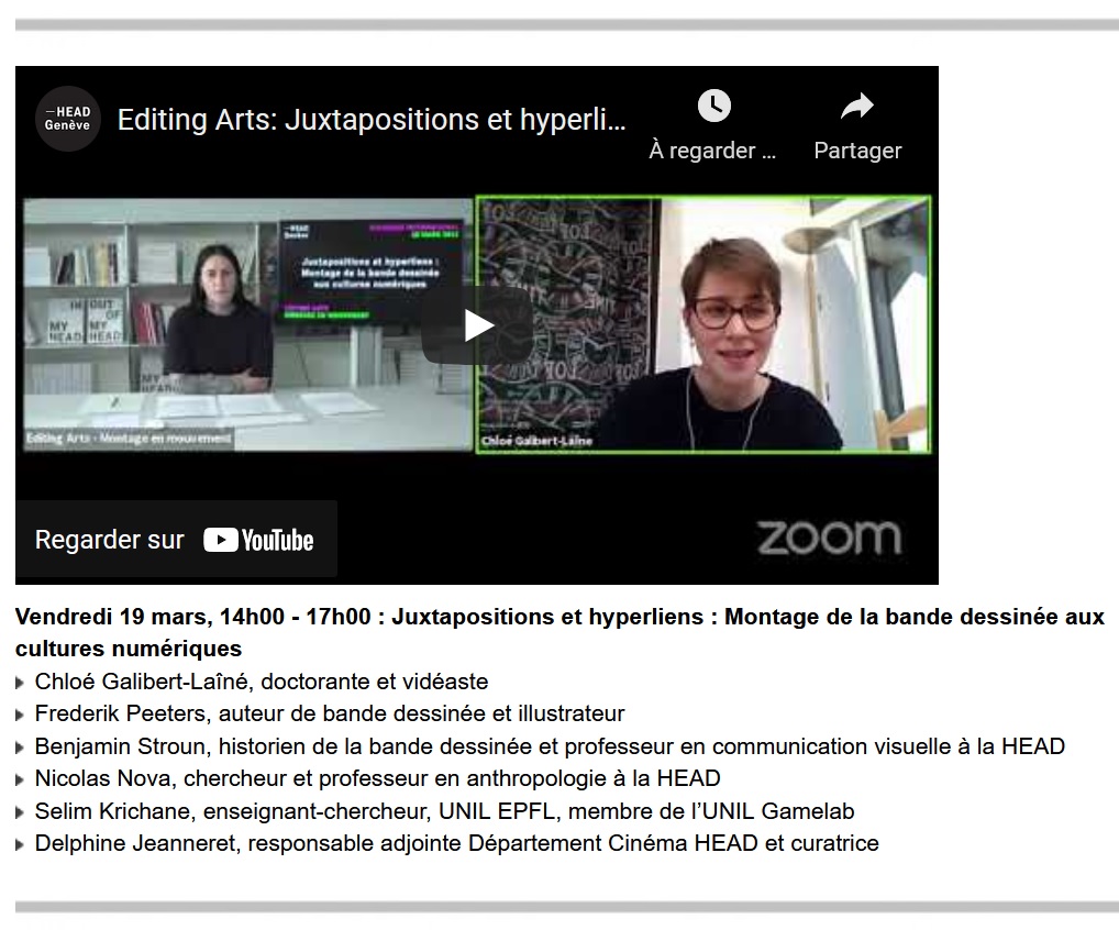Chloé Galibert-Laîné was invited to screen her video essay Forensickness and discuss her videographic research practice in dialogue with researcher and curator Delphine Jeanneret, as part of the international conference “EDITING ARTS: Le montage au cinéma et dans les arts contemporains” organized at the HEAD in Geneva, Switzerland.