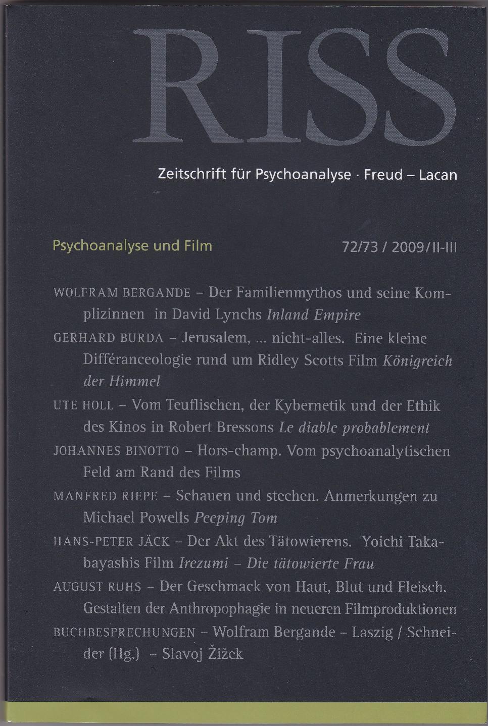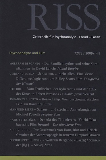 Johannes Binotto, «Hors-champ. Vom psychoanalytischen Feld am Rand des Films.» RISS. Zeitschrift für Psychoanalyse, 23 (72/73; 2009). S. 77-96.